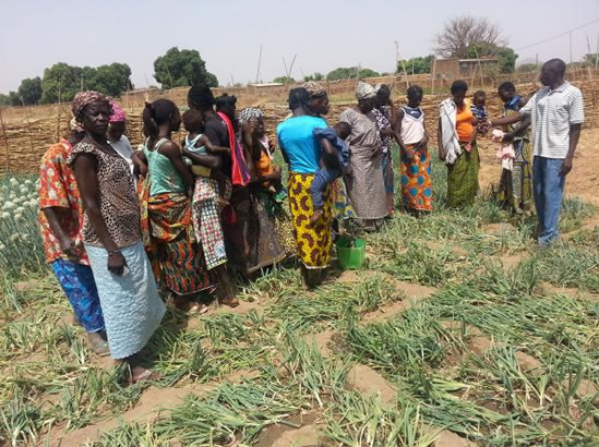 Des femmes de Kilsio dans le jardin communautaire du groupement Koroyé.