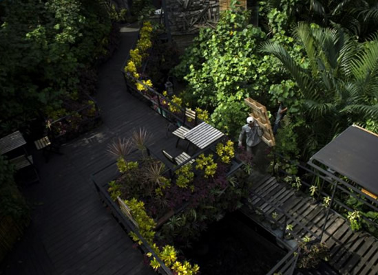 Comme de moins en moins de résidents vivent de l'agriculture à Bang Krachao, il faut trouver une autre utilisation aux terres agricoles, estime-t-elle. Le développement de l'agriculture biologique, afin que la zone devienne une "banque alimentaire urbaine" pour la capitale thaïlandaise, est une possibilité. Développer l'écotourisme en est une autre - le seul hôtel de la zone fait figure de pionnier en la matière. "Ici, pour nous, le plus important était que l'atmosphère soit la même qu'à la campagne", explique Tanaporn Wittayasiripaiboon, manager de cet hôtel, Treehouse, qui a ouvert il y a cinq ans. Il recourt à l'énergie solaire et dit miser sur un design en adéquation avec la nature et la campagne.