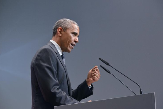 Le président américain, Barack Obama, lors d'une conférence de presse à l'issue du sommet du G7, le 8 juin 2015