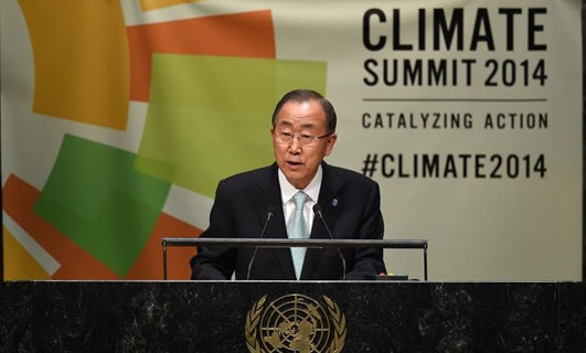 Ban Ki-Moon insiste sur la réduction des émissions de gaz à effet de serre et veut fixer un « prix pour le carbone », espérant qu’en touchant au portefeuille des Etats, ils seront plus enclins au changement.