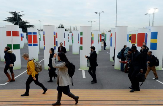 A l'entrée d'un auditorium de la COP21, le 2 décembre 2015 au Bourget Since a high-profile opening by more than 150 world leaders on November 30, bureaucrats have been poring over a draft of the first pact to propose a global roster of carbon-curbing undertakings. afp.com - DOMINIQUE FAGET