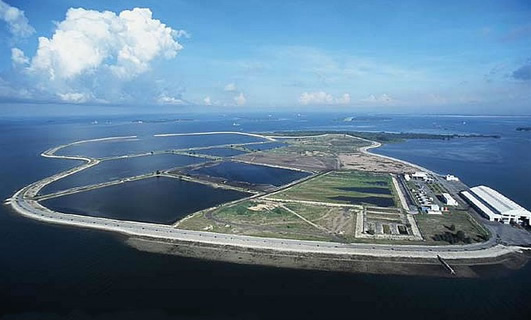 L’installation a couté 360 millions de dollars (soit 250 millions d’euros). Il comprend un mur de plus de 7 kilomètres de long constitué de sables, de roches et d’argile ainsi qu’une géomembrane de polyéthylène qui entoure toute l’île et empêche les fuites de lixiviats vers le milieu marin. Les mâchefers proviennent d’incinérateurs situés sur l’île de la cité Etat et sont acheminés par barges. Les déchets sont alors entreposés dans les alvéoles pour être scellées une fois remplies. Mais pour visiter le site, il faut prendre son mal en patience. La liste d’attente est de 4 mois. La décharge est la seule du genre qui encourage les visites des touristes 5 jours par semaine.