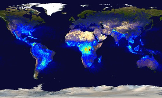 Carte des impacts de foudre sur Terre