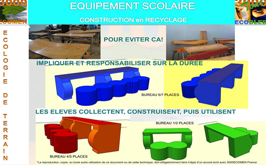 3000 ECOMEN ne se contente pas d’aller dans un pays, de faire son travail, et de repartir. Le but de l’association est d’enseigner ses techniques aux communautés avec lesquelles elle travaille. Ainsi, le schéma idéal est le suivant : la première année ils montrent leurs techniques, la 2ème année ils supervisent les constructions faites par les habitants eux-mêmes et la 3ème année les habitants construisent seuls. Le but est donc de transmettre un savoir du mieux-être et du pratique, adapté aux spécificités géographiques et aux ressources de chaque région.