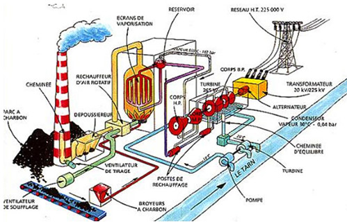 Processus de fonctionnement d'une centrale à charbon