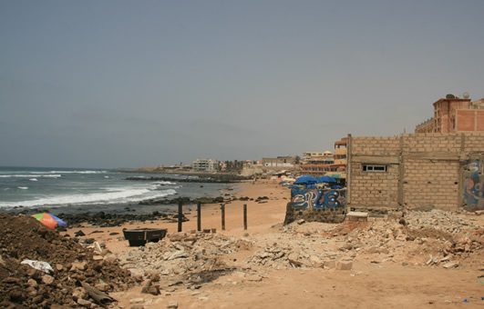 L’action de l’homme sur le littoral, à travers la construction en dur, le prélèvement de sables et de coquillages (entre Mbao et Bargny), la construction d’édifices perturbant les mouvements naturels de la mer, l’exploitation trop importante des côtes et plages a fortement accéléré le processus d’érosion.