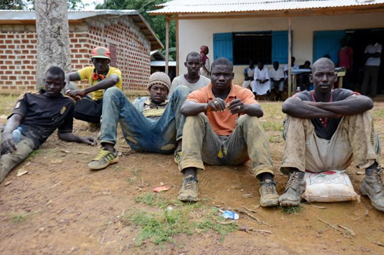 Des migrants maliens attendent les camions pour aller travailler à la plantation de caoutchouc de Batouri, le 30 avril 2015