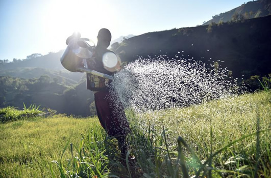 Manio, 15 ans, arrose les plantations familiales avec l'eau qu'il est allé chercher à la source, à Godet, dans la région de Port-au-Prince en Haïti - HECTOR RETAMAL
