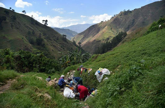 Si les habitants du village ont conscience qu'ils polluent leur unique source en faisant leurs besoins en pleine nature, ils ignorent, par manque d'éducation, les effets néfastes des produits chimiques sur l'eau. Les femmes qui se rendent collectivement à la source pour laver leurs vêtements, rejettent ainsi la lessive dans le ruisseau. "C'est fait à partir de fleurs, c'est naturel", se défend Marie-Juna, 30 ans, en montrant l'étiquette sur sa bouteille d'adoucissant. Et d'un geste, elle verse finalement le liquide bleu à l'endroit même où elle vient, chaque matin, prendre l'eau qu'elle boit et donne à boire à ses enfants.