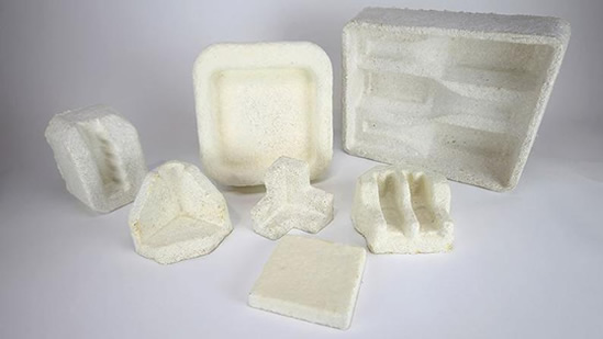 Exemples d'emballages conçus à base de champigons