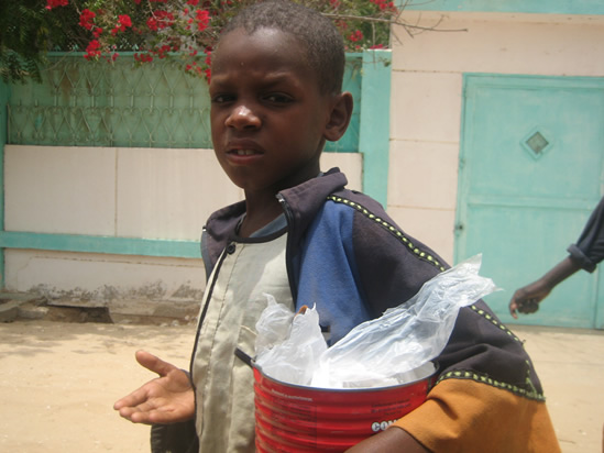 L’ONG Human Rights Watch estimait en 2010 à 50 000 le nombre de talibés au Sénégal (30 000 pour la seule ville de Dakar), c’est-à-dire d’enfants sans-abris qui mendient dans les rues des métropoles sénégalaises. Sous « tutelle » non-légale de groupes religieux, ils mendient toute la journée au profit d’écoles coraniques qui les exploitent. Officièlement considérés comme des élèves ou jeunes disciples étudiants le Coran, ils font aujourd’hui partie de l’environnement quotidien des urbains, qui s’y sont accoutumés et s’y intéressent fort peu.