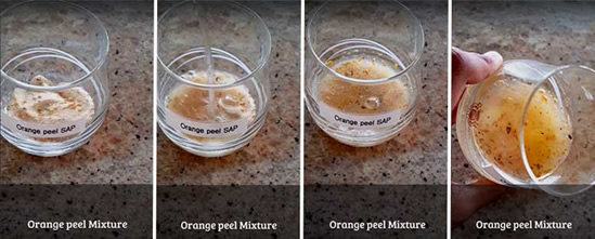 Son processus de recherche s’est fait à tâtons. L’adolescente a d’abord étudié la composition des polymères super absorbants, et remarqué que tous contenaient une certaine chaîne moléculaire : de la polysaccharide. Ce composant est présent à 64% dans la peau d’orange, où l’on retrouve également un agent gélifiant. Le choix de l’avocat a été motivé par la présence de son huile. Une fois combinées dans une mixture qui réagit au soleil, les peaux d’orange et d’avocat forment ce polymère biologique au fort pouvoir d’absorption.