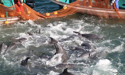 L'année 2014 n'apporte aucun répit aux dauphins puisque dès mi-janvier, plus de 250 tursiops ont été rabattus dans la baie de l'enfer pour être massacrés, rapporte Sea Shepherd.