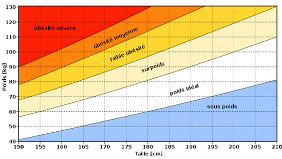 Rappel : pour connaître votre état, il faut calculer votre indice de masse corporelle (IMC) – votre poids divisé par le carré de votre taille en m, il faut avoir un score entre 18,5 à 25 pour avoir le poids idéal. (Exemple : 72/1,73 = 24) Où référez-vous au tableau.
