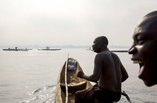Près du port de Bangui, les ramasseurs de sable reprennent leur activités sur la rivière Oubangui.