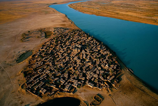 Village sur la rive du fleuve Niger, région de Mopti, Mali. © yannarthusbertrand2.org