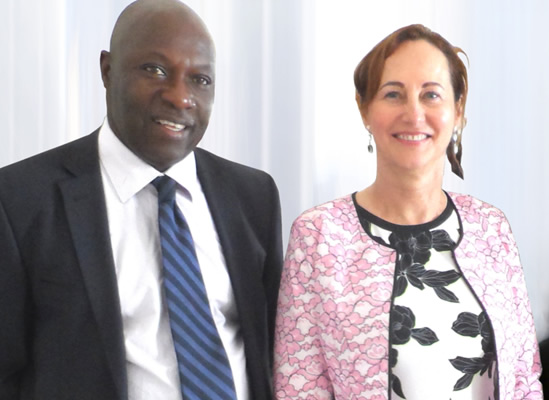 Pr Adams TIDJANI, Directeur de publication du magazine VIE et Fondateur de l’Institut des Métiers de l’Environnement et de la Métrologie (IMEM) et Mme Ségolène Royal, ministre français de l’écologie, du développement durable et de l’énergie