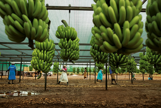 Bananalandia, une entreprise de 1 400 ha implantée près de Maputo, au Mozambique, a amélioré la vie de la population locale. La société, qui emploie 2 800 ouvriers, a construit des routes et des écoles. Et a fait du pays un exportateur de bananes. © Robin Hammond